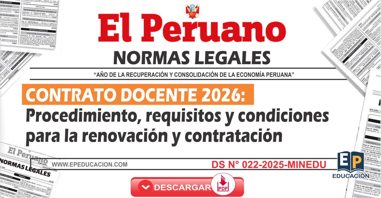 El Ministerio de Educación, mediante decreto supremo ha publicado los requisitos y condiciones para la renovación y contratación docente para el año académico 2026
